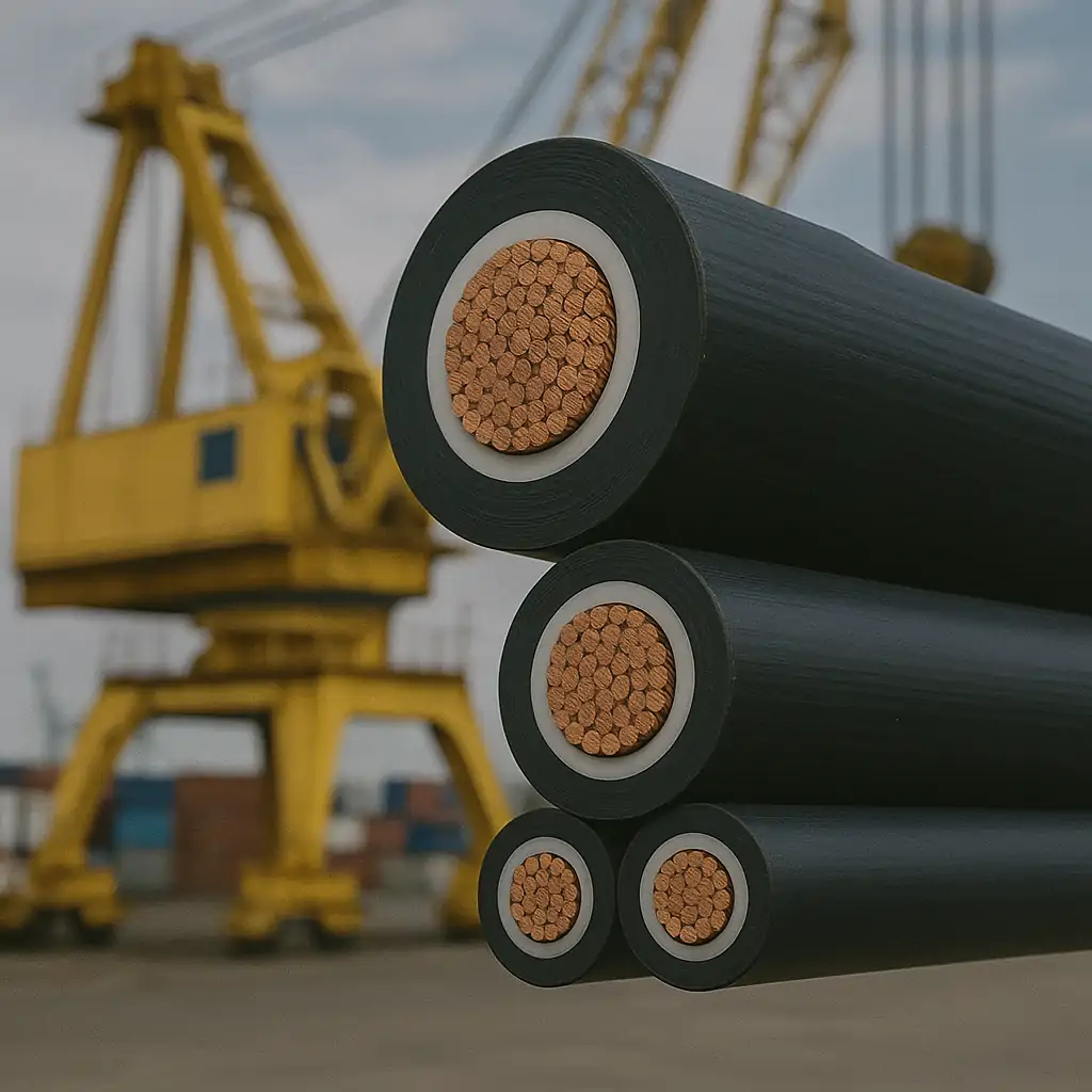 Heavy-duty flexible cables built to withstand extreme mechanical stress, torsion, and continuous movement in cranes. They are reinforced to handle harsh outdoor environments, heavy loads, and long operational life in construction and shipping industries.