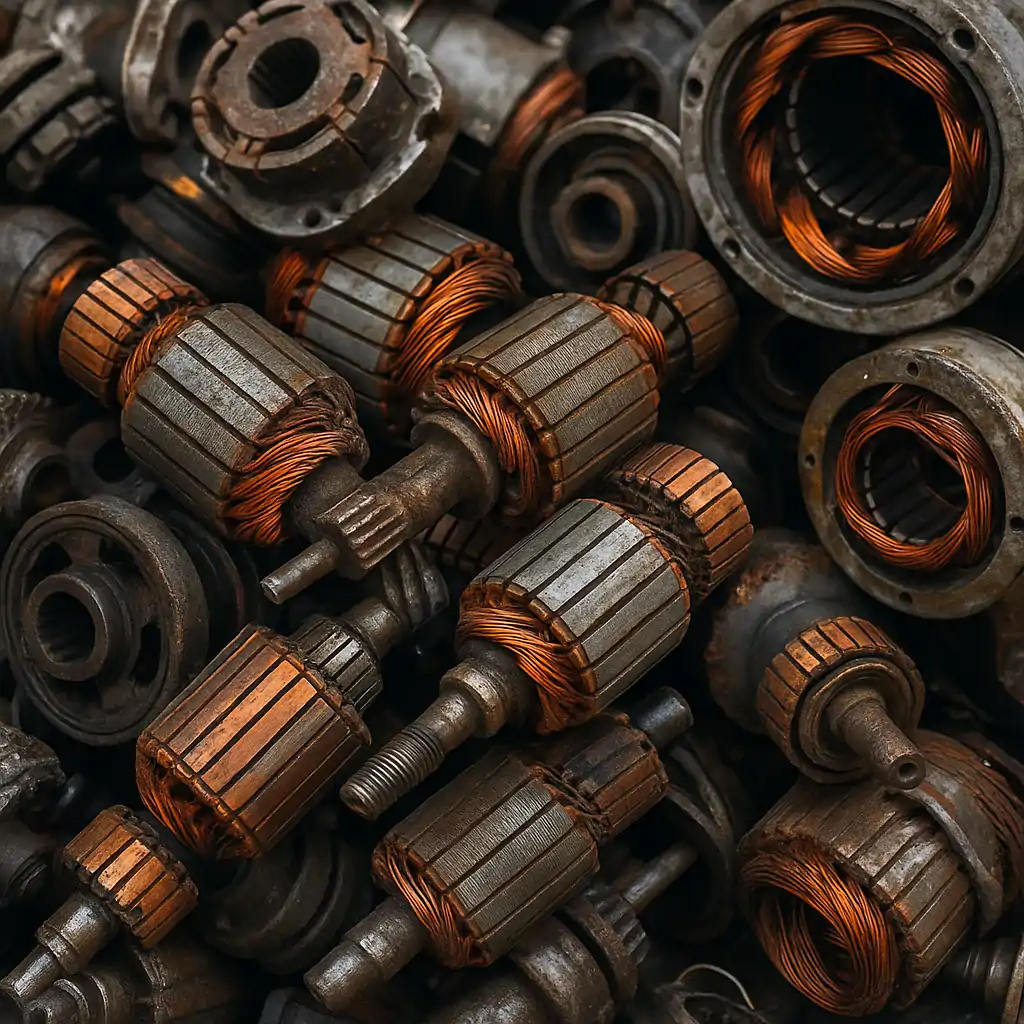 Comprising copper windings and electrical motor parts, this scrap is rich in copper content and widely used by smelters for recycling into refined copper products.